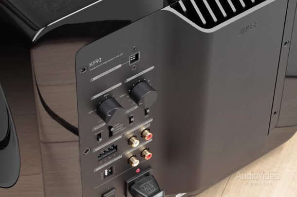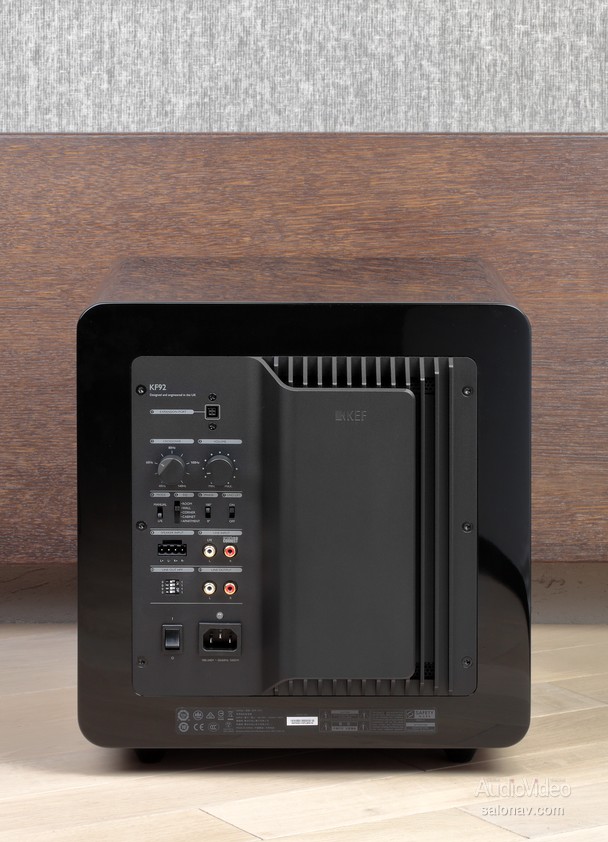 Кроме селектора режимов работы в KF92 имеется переключатель фазы и регулятор ширины рабочей полосы (до 140 Гц), высокоуровневые входы (реализованы через специальную колодку) и низкоуровневые выходы (на полную полосу или с отфильтрованным басом). Интерфейс для подключения адаптера KEF KW1 позволяет подавать сигнал по беспроводному каналу с минимальной задержкой.